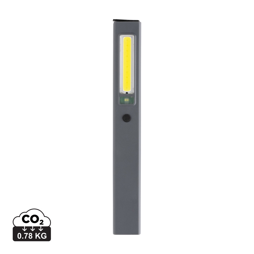 Kabatas izmēra pārbaudes gaisma izgatavota no RCS sertificētas otrreizējās pārstrādes ABS plastmasas. Kopējais pārstrādātais saturs: 33%, pamatojoties uz kopējo preces svaru. RCS sertifikācija nodrošina pilnībā sertificētu pārstrādāto materiālu piegādes ķēdi. Darba lukturim tiek izmantots atkārtoti uzlādējams A klases 520 mah litija akumulators, tāpēc baterijas nav jāmaina. Vienkārši atkārtoti uzlādējiet, izmantojot USB ligzdu. Darba gaismai ir 220 lūmenu COB gaisma un 80 lūmenu LED gaisma. Ar 3 režīmiem: LED, COB un COB sarkans. Ar klipsi piestiprināšanai pie jostas vai kabatas un magnēta. Ar C tipa pieslēgvietu atkārtotai uzlādei. Darbības laiks ar vienu uzlādi: 3 stundas.