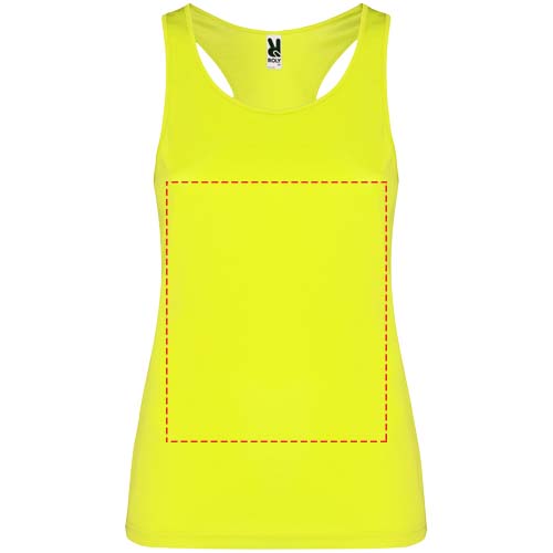 Tehnisks, elpojošs, viegli mazgājams un viegli žūstošs audums. Rievoti roku izgriezumi un kakla izgriezums. Racerback un sānu šuves. Noņemama etiķete.