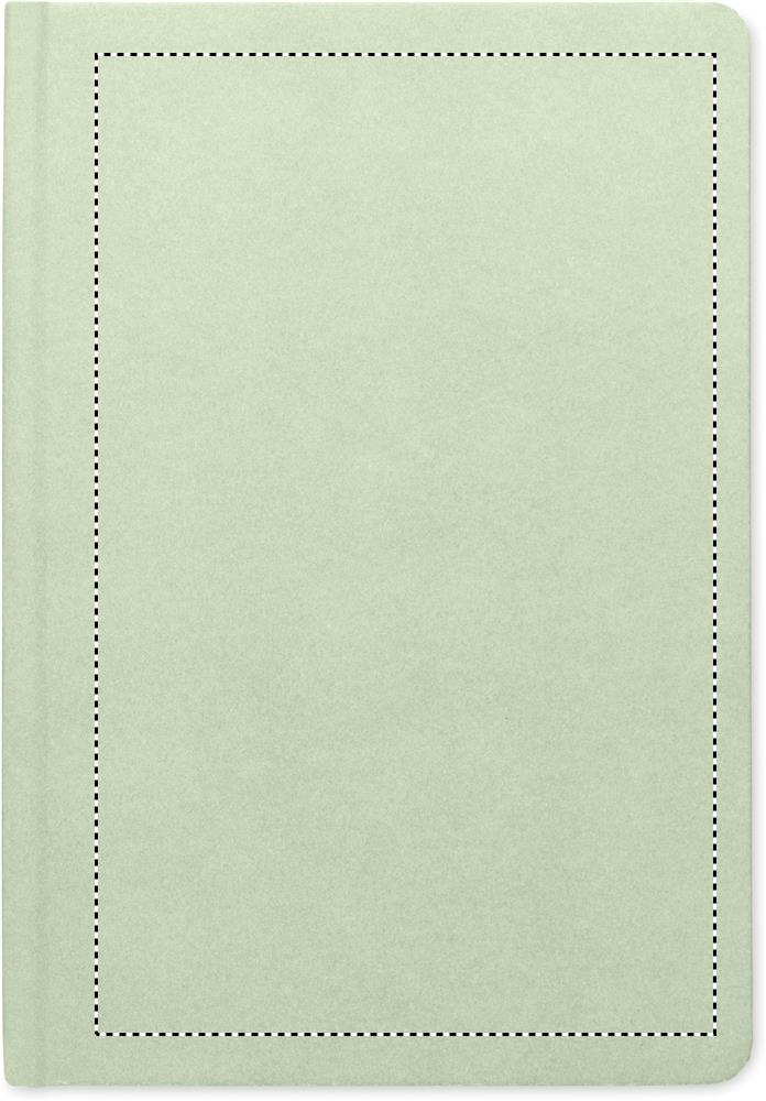 A5 notebook with hard cover and 160 lined paper pages (80 sheets) in PLA sugarcane (65% Sugarcane fibre/35% paper). Casebound.