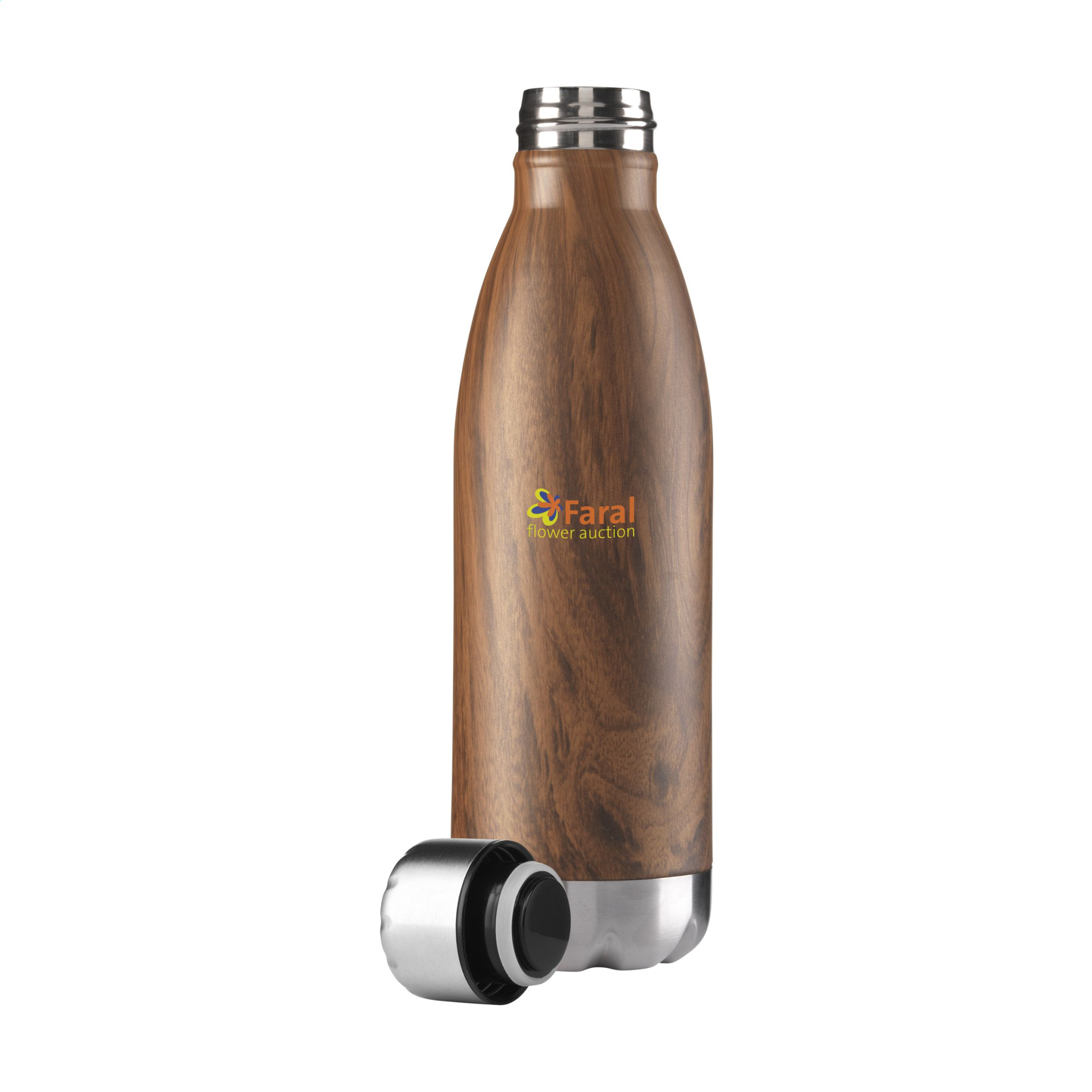 Бутылка для воды из нержавеющей стали с двойными стенками и вакуумной изоляцией. С герметичной завинчивающейся крышкой. Эта элегантная модель имеет яркий, привлекательный верхний слой с рисунком под дерево. Подходит для поддержания температуры холодной или горячей воды. Емкость 500 мл. Каждый предмет в индивидуальной коробке.