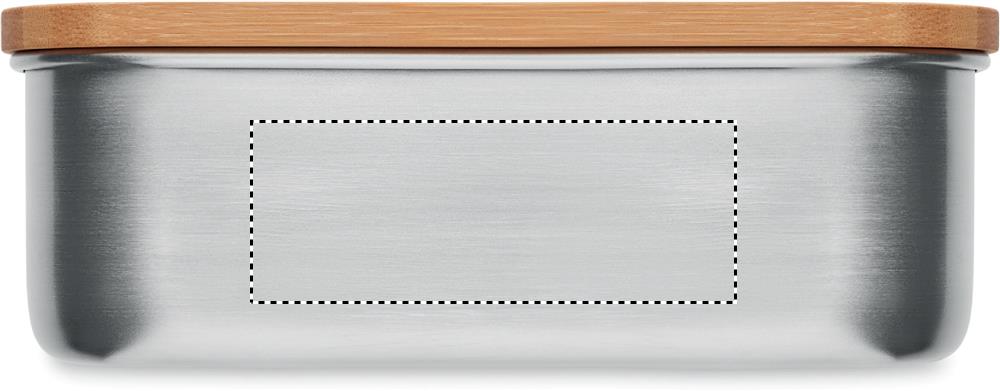 Ланч-бокс из нержавеющей стали с бамбуковой крышкой и 2 столовыми приборами с фиксируемой лентой из полиэстера. Емкость 600мл. Так как бамбук является натуральным материалом, у отдельных изделий могут быть небольшие различия в цвете и размере