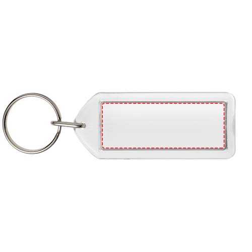 Прозрачный прямоугольный брелок F1 с металлическим разъемным кольцом. Этот брелок можно открыть с помощью монеты. Металлическая петля для крепления кольца представляет собой плоский профиль, что делает его идеальным для пересылки. Размеры печатной вставки: 5,0 см x 2,0 см.