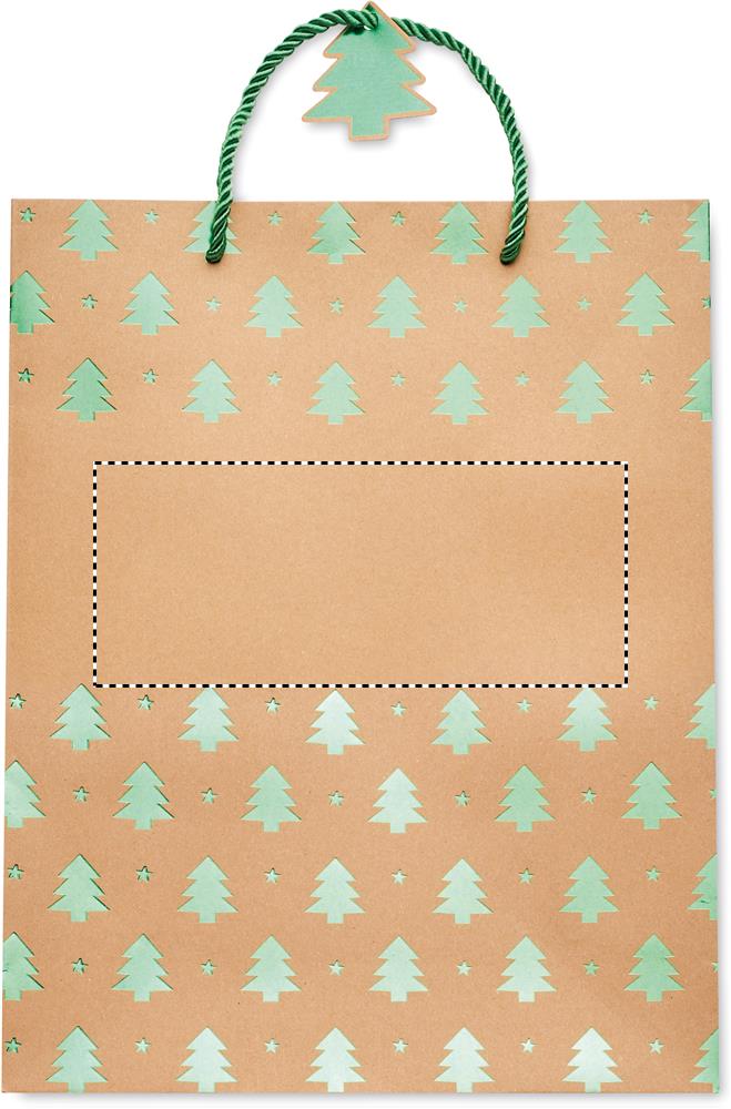 Элегантный подарочный пакет из крафт-бумаги с сезонным рисунком. Подарочная бирка в комплекте. 250 гр/м².