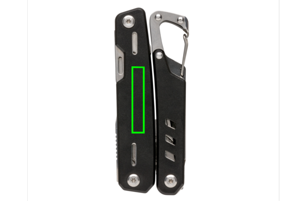 Прочный и долговечный многофункциональный инструмент с 11 функциями. С алюминиевым корпусом и инструментами из нержавеющей стали. В набор входят: плоскогубцы с острыми носами, обычные плоскогубцы, кусачки, нож, крестовая отвертка, плоская отвертка, пила, консервный нож, открывалка для бутылок, инструмент для зачистки проводов, карабин. Упакован в подарочную коробку.