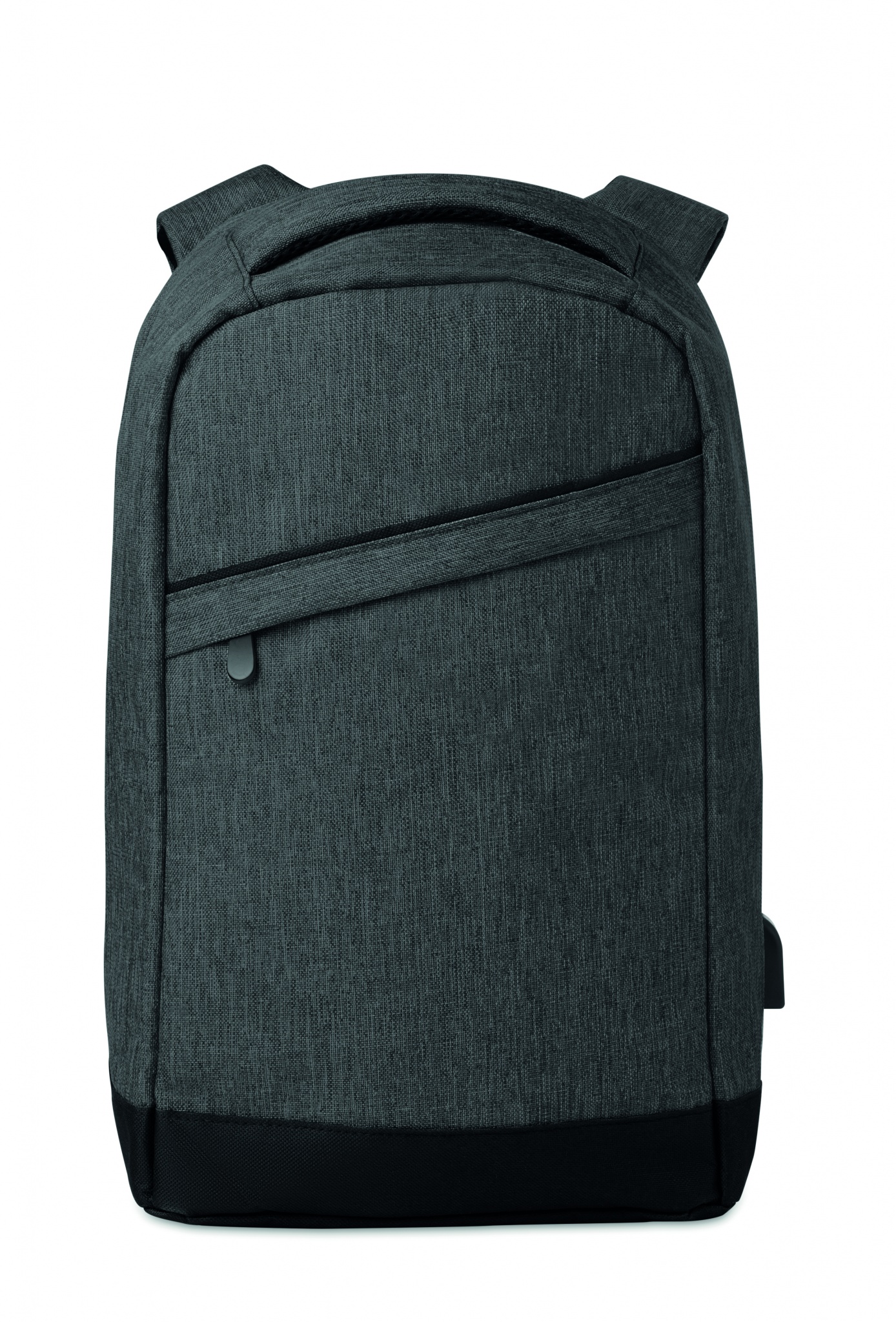 Рюкзак из полиэстера 600D двухцветный с мягким плечевым ремнем и основным внутренним отделением. Включает в себя один внутренний отсек для ноутбука с диагональю 13 дюймов и кабель для зарядки USB. Основной отсек на молнии на задней стороне для лучшей защиты.