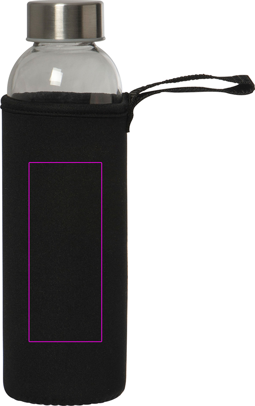 Герметичная бутылка для питья из стекла с крышкой из нержавеющей стали и емкостью 500 мл. Бутылка поставляется в соответствующем неопреновом чехле с ремнем для переноски. Мы печатаем ваш логотип в центре чехла. Гравировка на крышке или бутылке и печать на бутылке возможны по запросу.