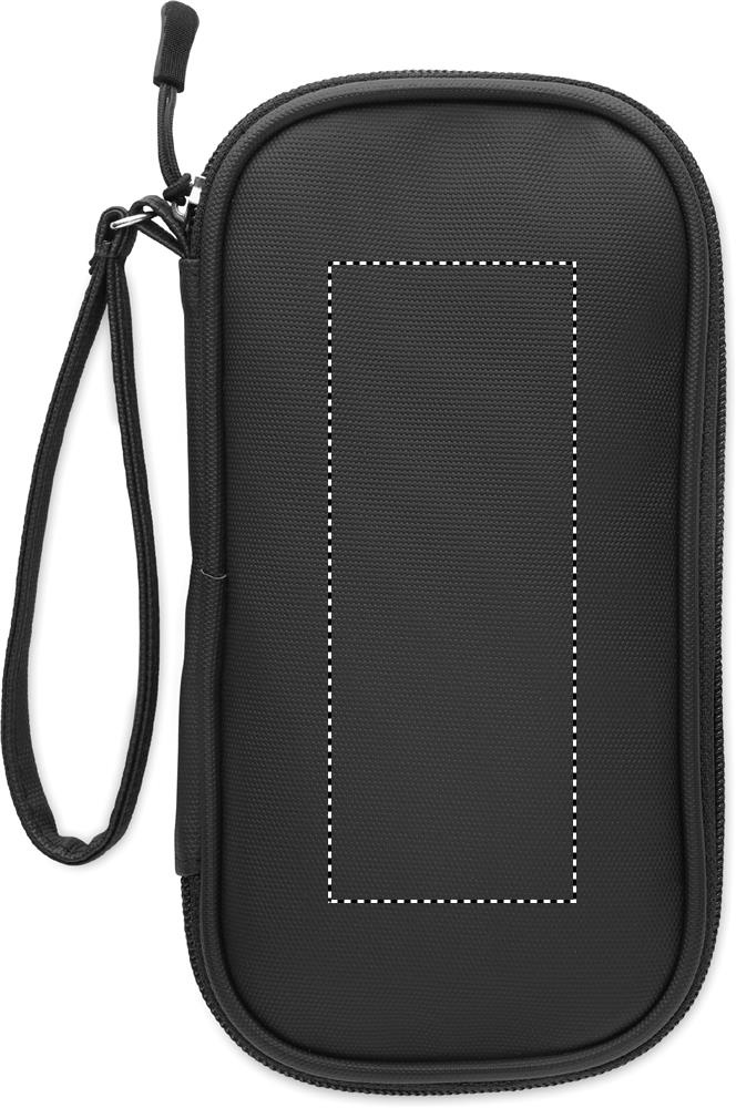 Tech organizer pouch in 600D RPET polyester with PU coating.