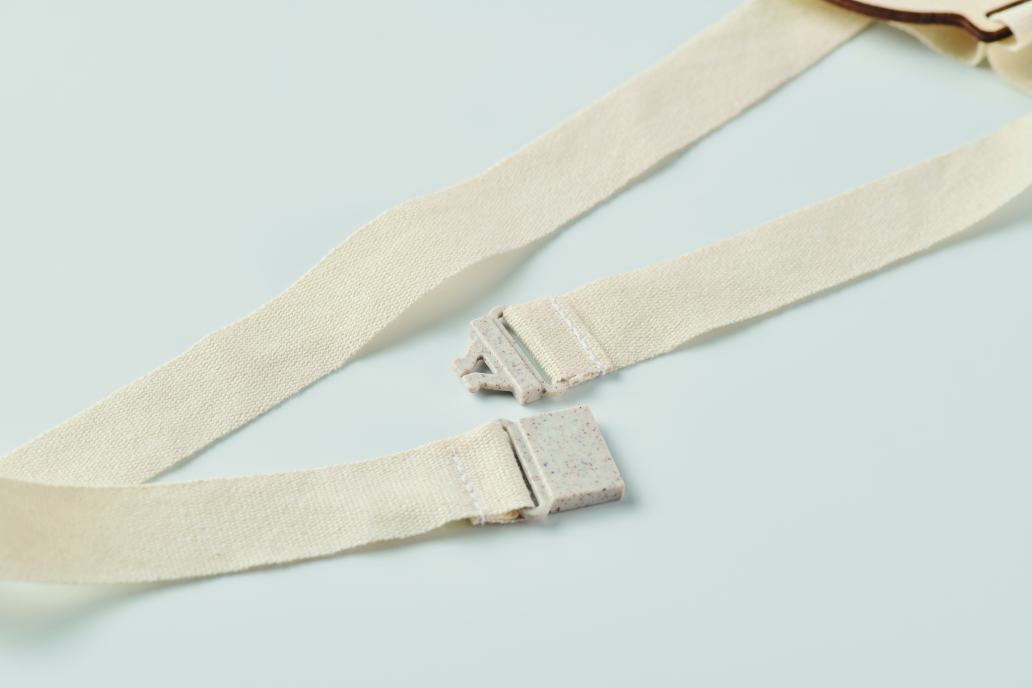 Wooden medal with cotton strap and wheat straw/PP buckle.
