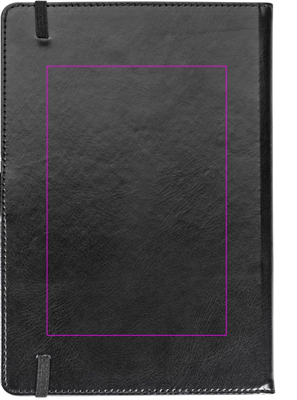 A5-anteckningsbok i läderimitation, med 80 raderade sidor, 4 infällbara fack och pennögla. Vi trycker din logotyp på omslaget.