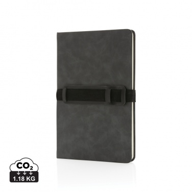 Logotrade profilreklam bild: A5 hardcover PU anteckningsbok med mobil och-pennhållare
