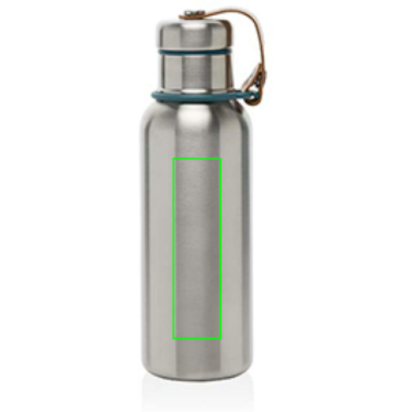 Stainless Steel Insulated Water Bottle är en elegant vakuumförseglad flaska som håller drycker kalla i 24 timmar eller varma i 12 timmar. Locket är också helt i rostfritt stål, vilket innebär att vattnet inte kommer i kontakt med någon plast. Konstlädret fungerar som en bärögla och är en fin designdetalj. Endast handtvätt