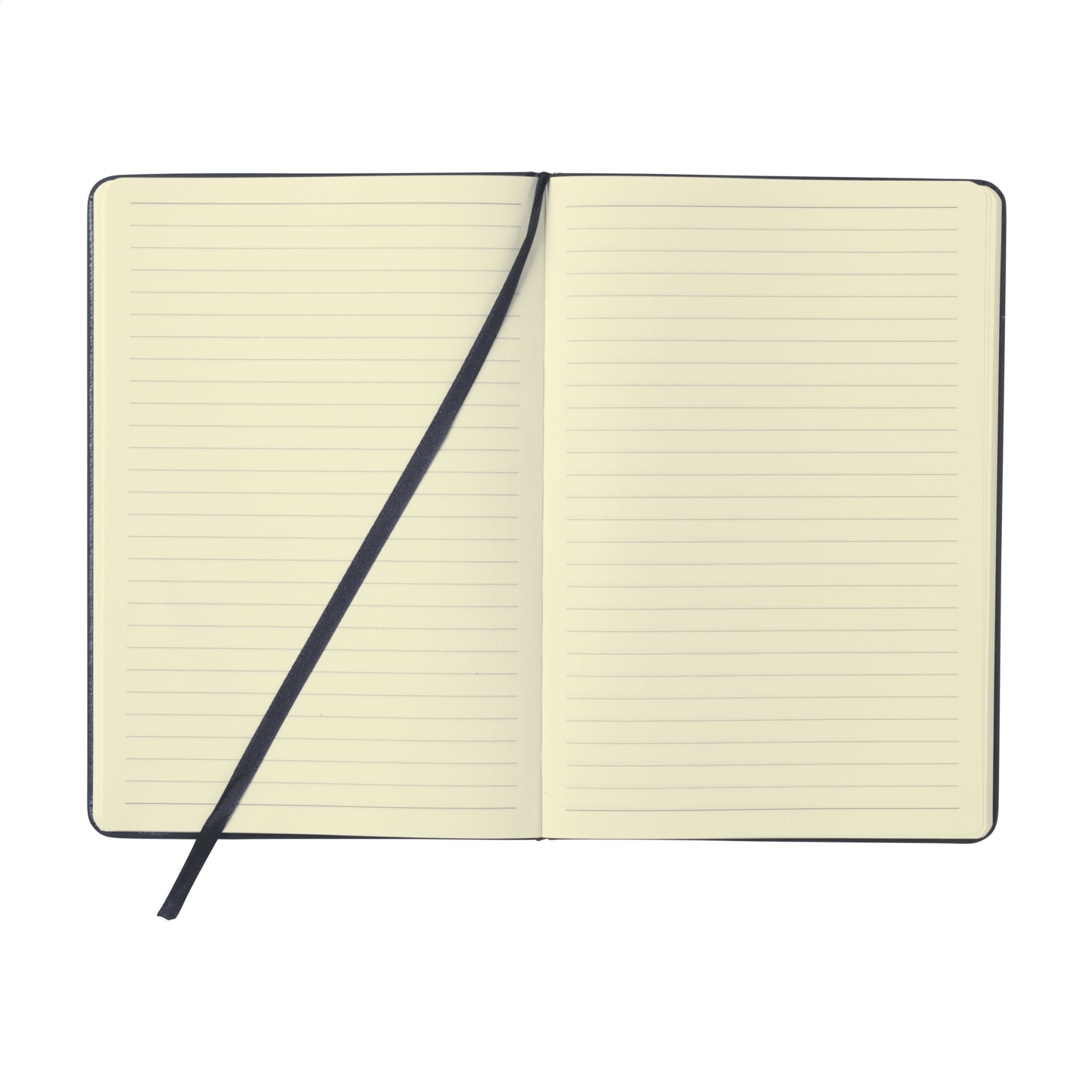 Praktisk anteckningsbok i A5-format. Med hårt PU-överdrag, ca. 80 ark/160 sidor krämfärgat, fodrat FSC Mix-certifierat papper (70 g/m²), elastisk stängning och bandmarkör.
