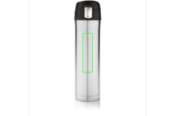 Dubbelväggig termos i rostfritt stål som håller din dryck varm upp till 5 timmar eller kyld upp till 15 timmar. Locket går att låsa och på så sätt undviker du spill och läckage. Locket är enkelt att rengöra för optimal hygien och kan till och med diskas i maskin. Termosens unika design gör det möjligt att dricka smidigt och säkert med en hand direkt från flaskan. Flaskans storlek passar nästan alla bilmugghållare. Kapacitet: 450 ml.