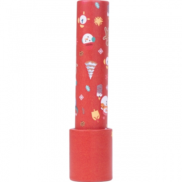 Kalejdoskop med julmotiv. Varje varv skapar nya, fascinerande former och färger. Din logotyp appliceras på kalejdoskopets framsida med hjälp av en etikett.