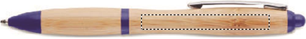Kulspetspenna i bambu med detaljer i plast. Blått bläck.