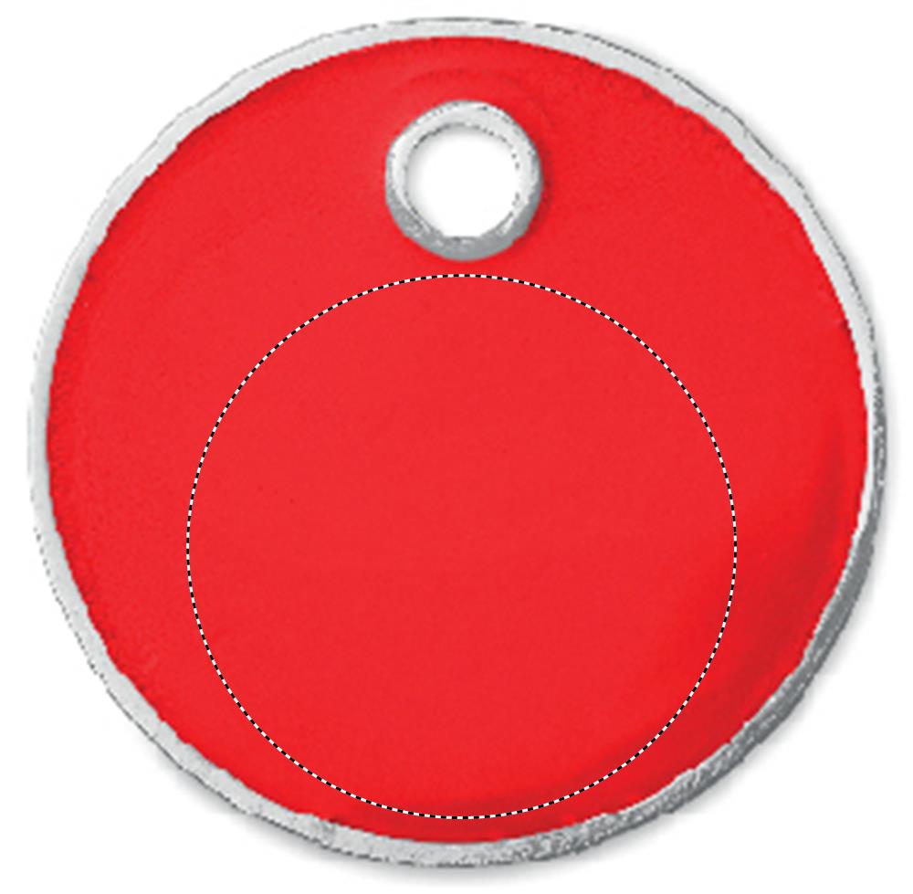 Nyckelring med kundvagnspolett i Euro € storlek. Metall med emalj imitation på framsidan. Mått: Ø23,2 x 2,1mm.