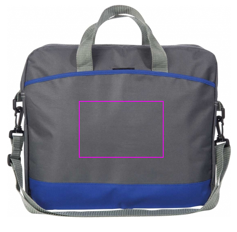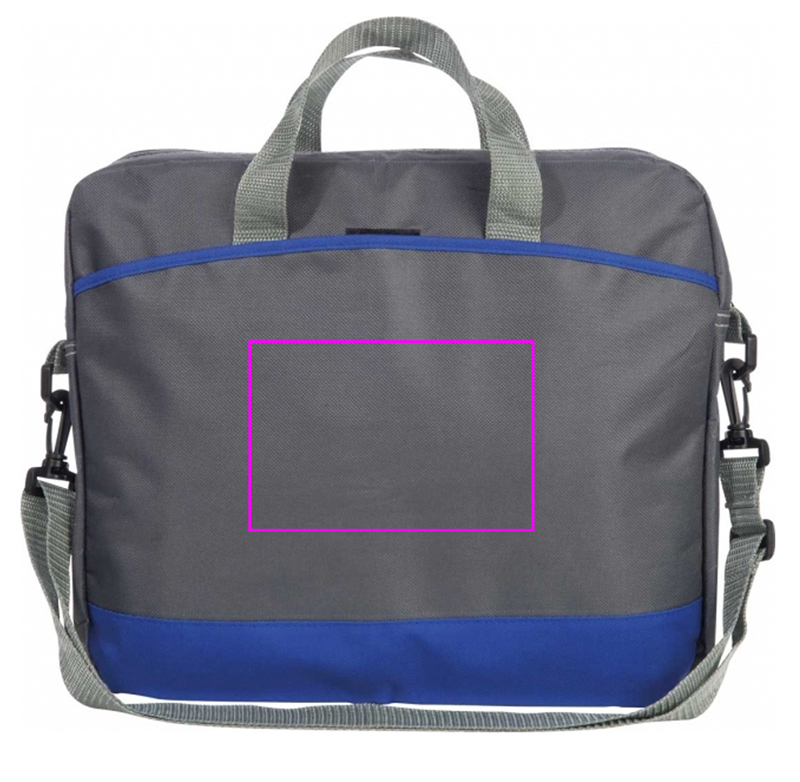Grå laptopväska med ljusa accenter, rymligt innerfack och främre fack där vi kommer att trycka din logotyp.