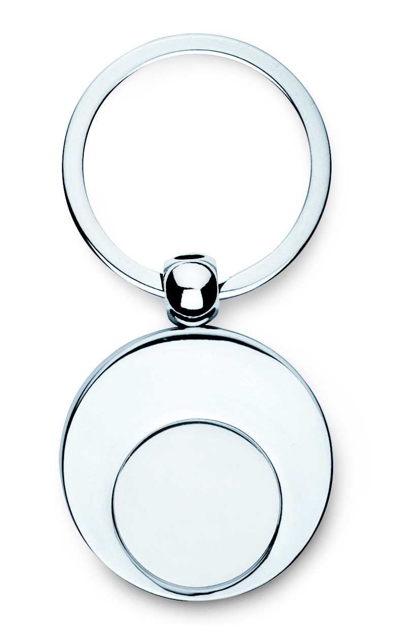 Nyckelring i metall med kundvagnsmynt i Euro storlek.