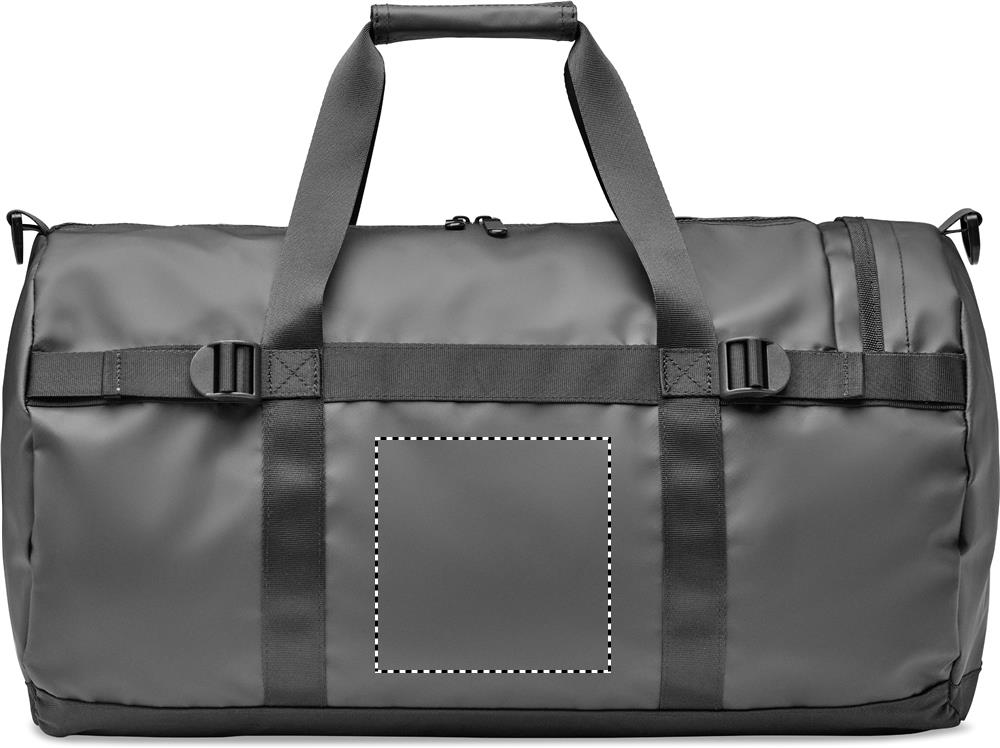 Dufflebag eller sport- och resväska i 50C-tarpaulinmed sidofack med dragkedja och innerficka med dragkedja. Den har ett handtag med komfortgrepp och vadderad botten.