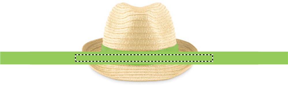 Stråhatt med färgat polyesterband. Vid otryckt order levereras banden omonterade på hatten. Onesize.