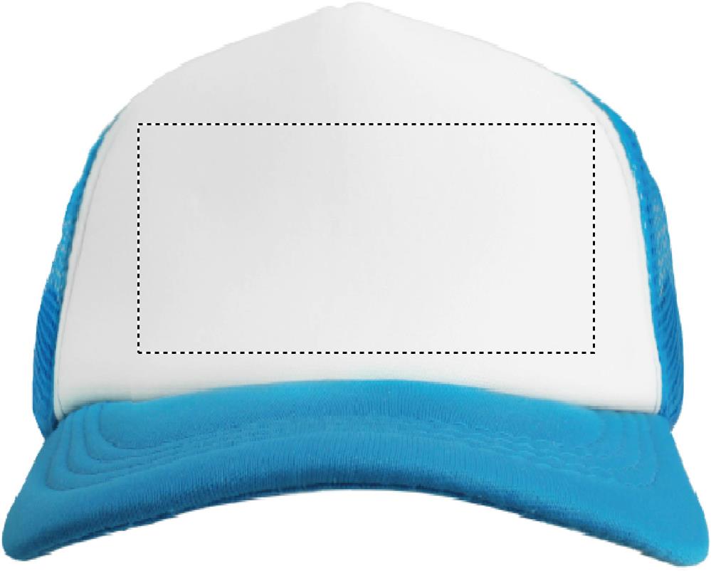 Truckerkeps i retrostil. 5 paneler i polyester 140-150 gr/m2 med plastspänne bak. Vit frontpanel med 4 mm vaddering ger stor tryckyta. Skärm i polyester jersey och nät i färgad mesh. Storlek 7 1/4.