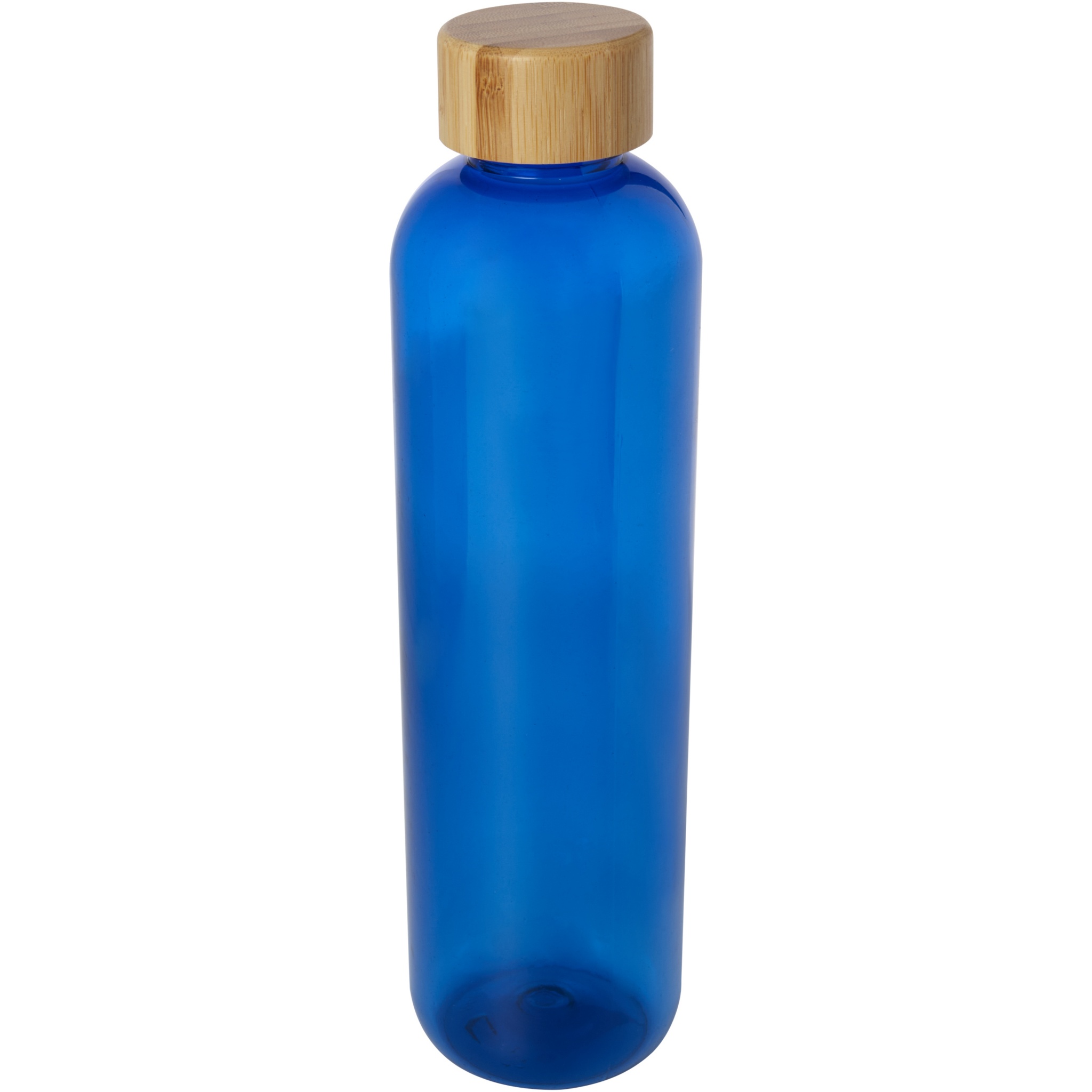 Vattenflaska tillverkad av återvunnen plast, med ett snyggt lock av bambu. Flaskan har enkelvägg, är BPA-fri, testad och godkänd enligt tysk lagstiftning om livsmedelssäkerhet (LFGB). Testad och godkänd för ftalat-innehåll enligt REACH-förordningen. Bambun kommer från hållbara, miljömässigt och socialt ansvarsfulla källor. Volymkapacitet 950 ml. Handdisk rekommenderas. Levereras i en presentförpackning av återvunnen kartong.
